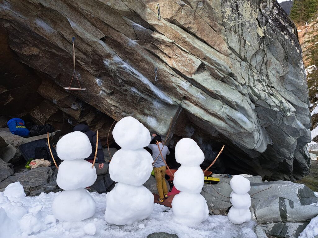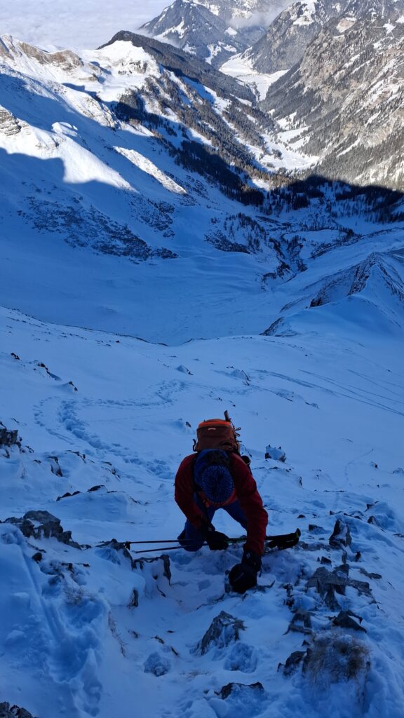 Mattstock mit Anna und Susi am 1. November. Die Südwand hat nur wenig Schnee am Einstieg.